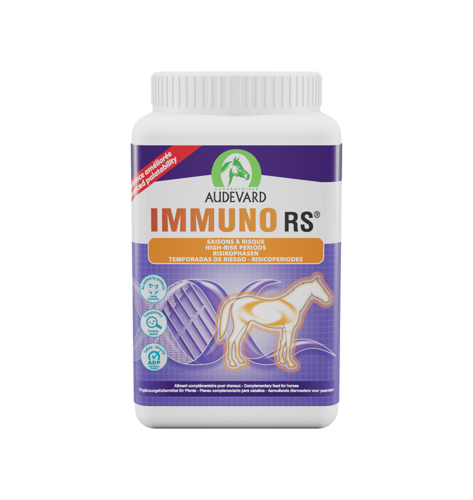 Prehranski dodatek za konje z oslabljenim imunskim sistemom zaradi povečane obremenitve, bolezni, občutljivosti in v obdobjih večje izpostavljenosti patogenom. Vsebuje ameriški slamnik, vitamine, elemente v sledovih, probiotike in beta glukane. Tako stimulira in krepi imunski sistem na več nivojih. Posebno priporočljivo je dajanje pred znanimi obdobji povečanega tveganja, na primer zimsko sezono, intenzivnimi treningi in menjavo okolja. Immuno RS pripomore k večji odpornosti konj, še